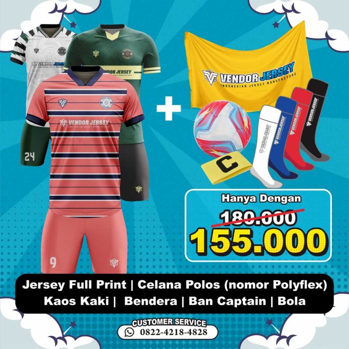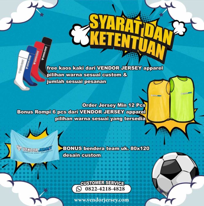Big Promo Bikin Jersey Futsal / Sepakbola Bonus Rompi + Bendera + Kaos Kaki + Bola