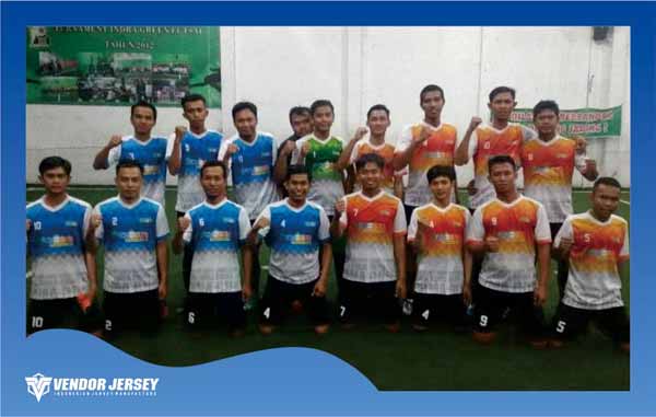 - Pembuatan jersey futsal printing (baju atasan full printing) + celana tidak printing (nomor celana polyflex)